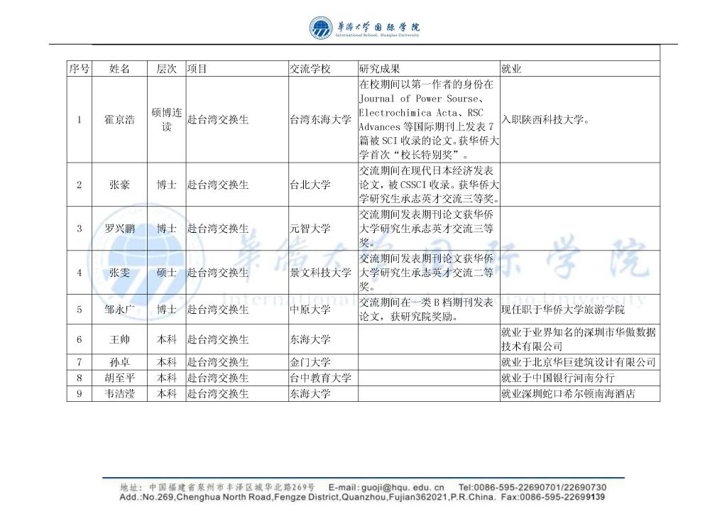 据不完全统计,参加项目的学生毕业后有相当大比例选择继续深造,其中参加过台湾项目的不少同学被世界名校录取,不少研究生在境外交流期间研究取得进展,发表论文。