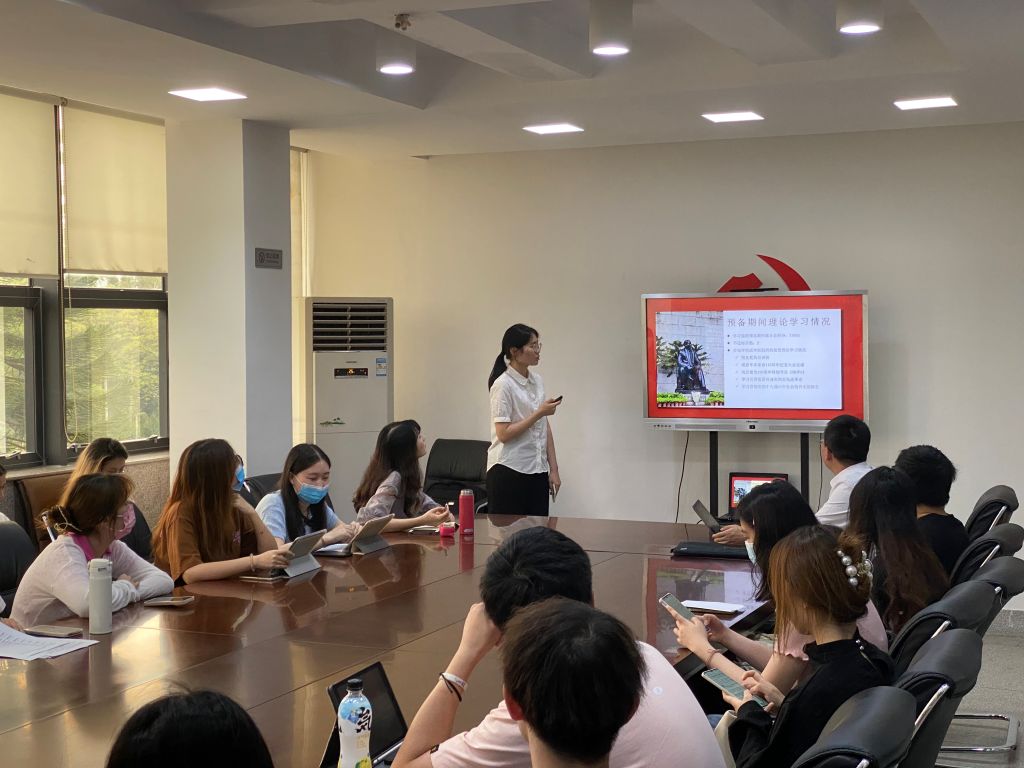 22名学生预备党员依次通过PPT演示方式,详细介绍参加学院组织的学习及征文活动、阅读书籍情况,疫情期间的作为,参加志愿服务,参加学生工作或社会活动等。