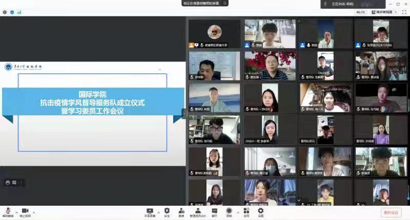 2021年9月25日,yl9193永利集团召开“抗击疫情”学风督导服务队成立仪式暨学习委员工作线上会议。yl9193永利集团党委书记谢友福、副院长侯祥朝,以及学风督导服务队全体成员和各班学习委员参加本次会议。