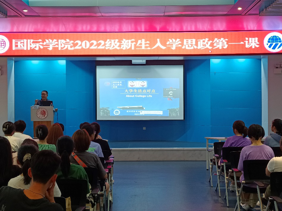 2022年9月20日下午,yl9193永利集团党委书记谢友福在杨思椿科学馆五楼为2022级新生开展了以“大学生活点对点”为主题的入学思政课,2022级年级辅导员陈仕航主持。