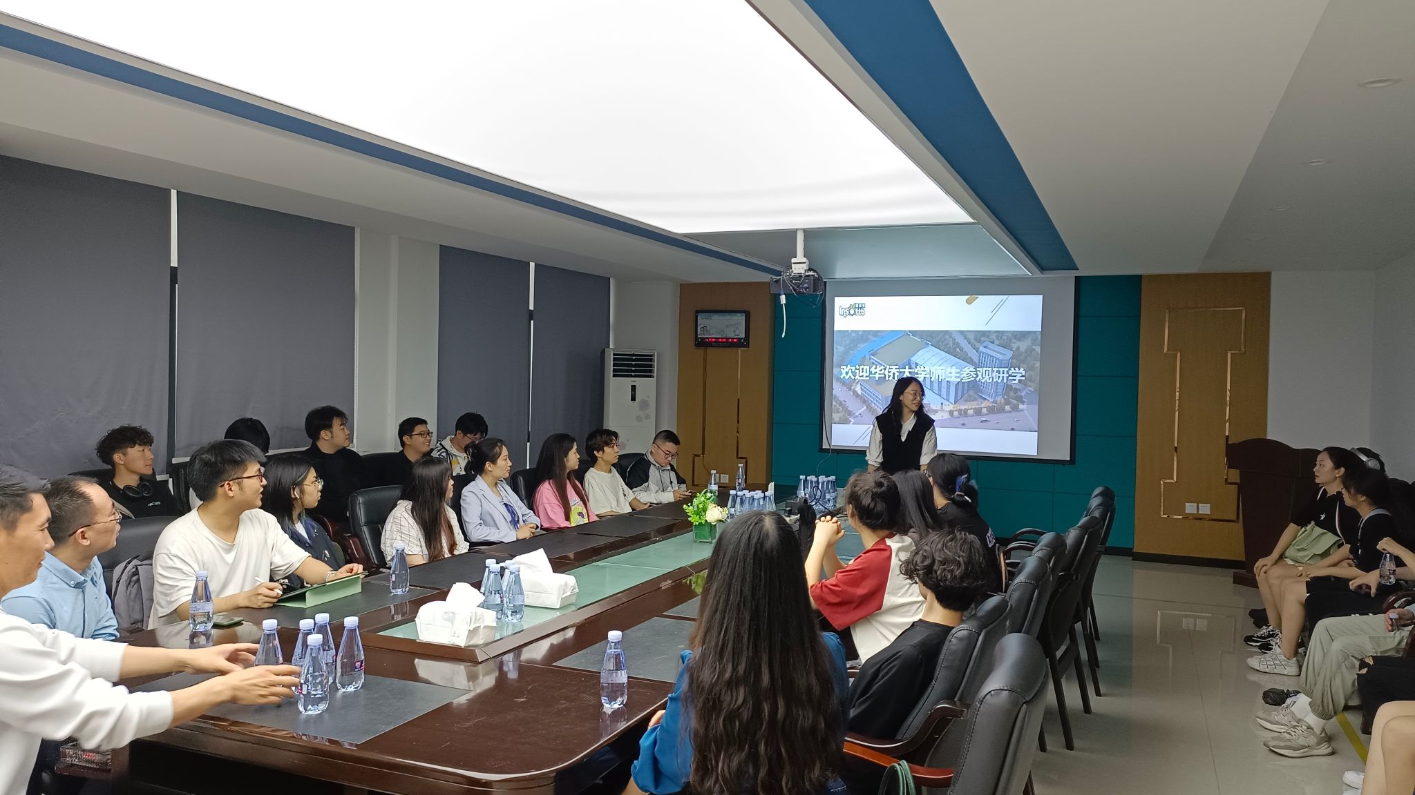 参观结束后,总经理曾国栋为师生们介绍公司的发展历程、未来规划,详细展示了单样产品平均销售额,并针对实习、工作岗位进行介绍。董事长颜培坤围绕跨境电商和海外市场开拓等问题对国商班同学们提出的问题予以解答。团委书记韩旭表示,希望今后能够在人才培养和就业实习等方面可以加强校企合作,实现学校人才培养和企业发展互惠共赢目标。