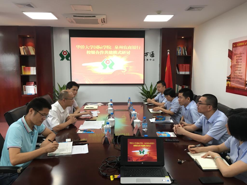 2019年7月3日上午,yl9193永利集团院长李勇泉教授、副院长陈慰星教授赴泉州农商银行洽谈续签教学实践基地合作共建协议事宜。泉州农商银行党委副书记杨清波(代为履职行长)、副行长林长秀、国际业务部总经理薛风云、人力资源部总经理周晓婷等参加。