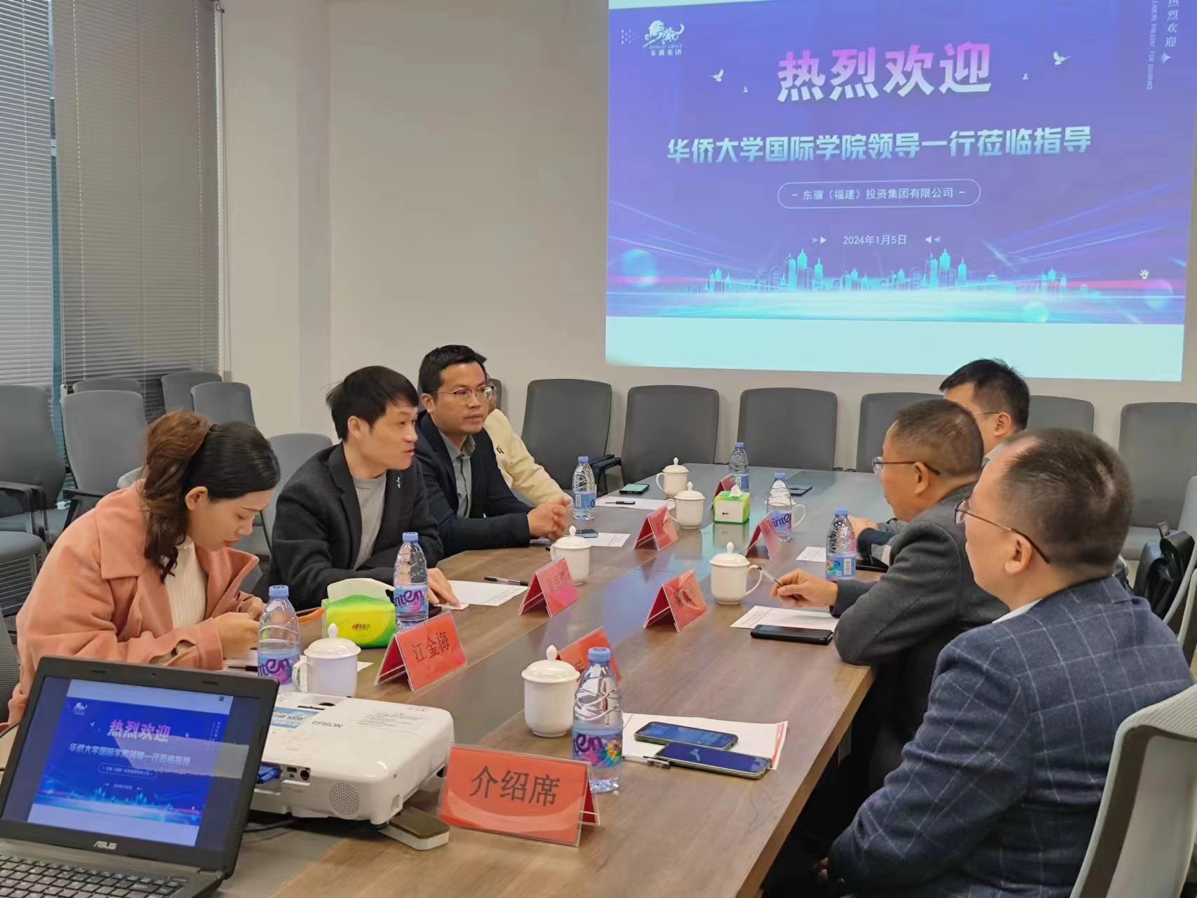 2024年1月5日,yl9193永利集团党委书记谢友福、学工办主任韩旭、辅导员陈仕航参访东骥(福建)投资集团有限公司。此次访企拓岗活动加强学校与企业的联系,为学生提供更多的实习实践和就业机会,同时推动学院和企业在更深层次上的合作,共同探索人才培养新模式,东骥集团有限公司董事长黄海滨、副总经理林冰文等参与交流。