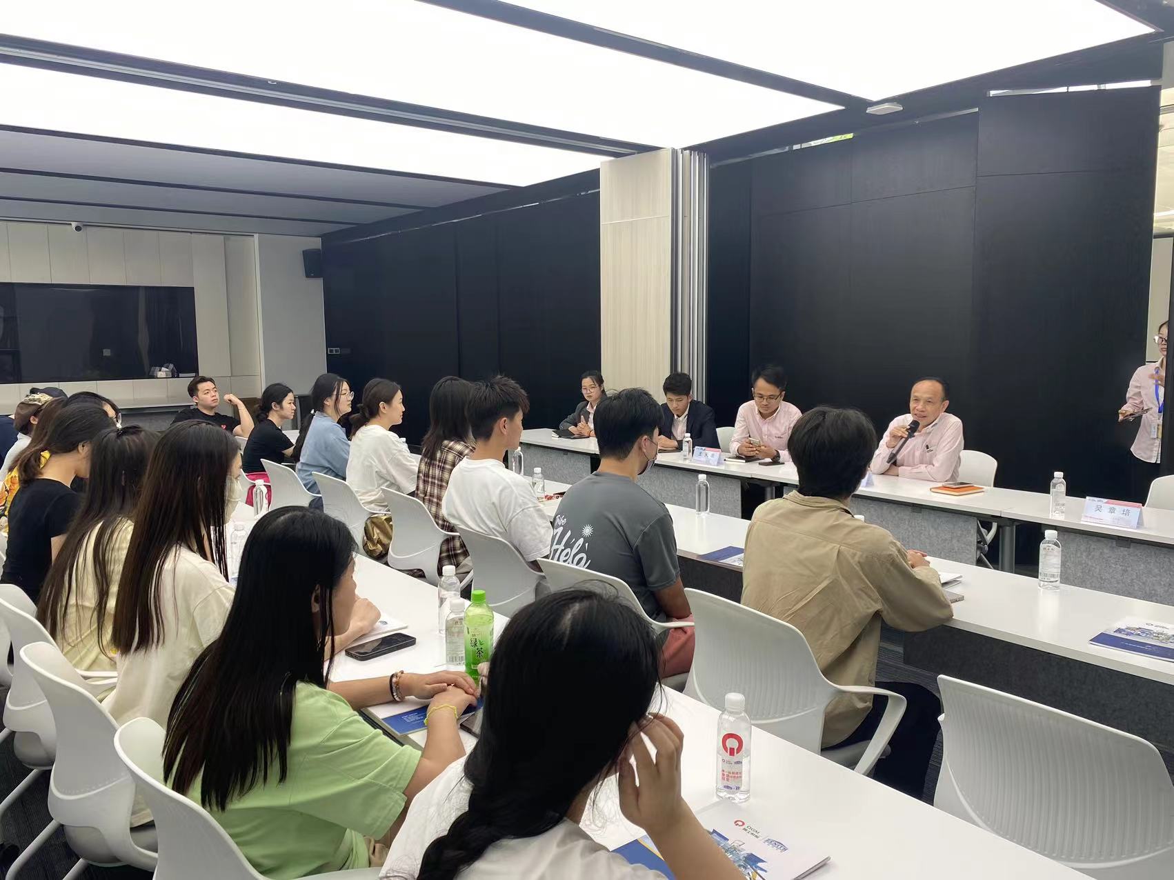 随后,双方在会议室展开了深入的交流与探讨。泉工集团王天发经理详细介绍了泉工集团的发展历史,重点介绍了对外贸易业务开展的基本情况与要求,以及对外贸易业务工作者的晋升渠道与空间。泉工集团董事长傅炳煌结合自身几十年的创业经历,勉励同学们开拓国际视野,积极了解国际形势,提升专注能力,不断提升自身综合能力,未来有机会加入泉工集团,实现人生价值。现场,同学们就工资薪酬、行业发展前景等问题进行交流互动。活动结束,双方合影留念。
