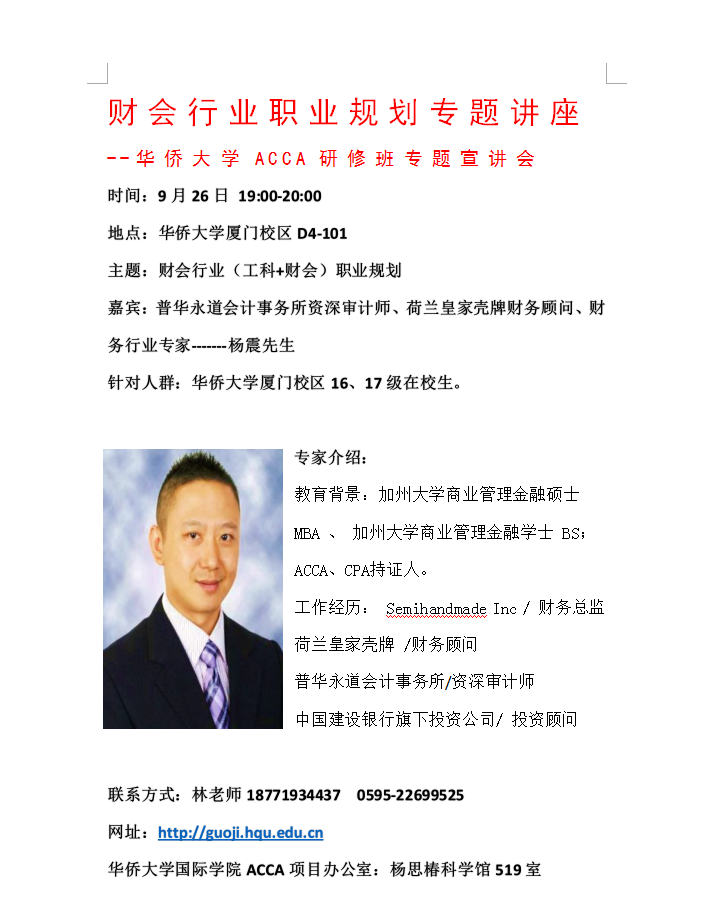 【I学习】永利集团 ACCA、CFA 厦门校区宣讲介绍