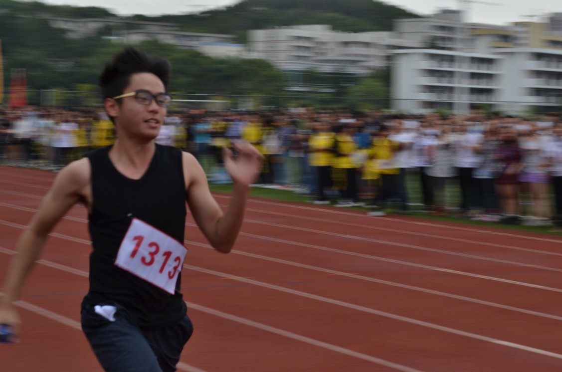 来自印尼的留学生李迈同学在20*50m接力跑项目比赛中