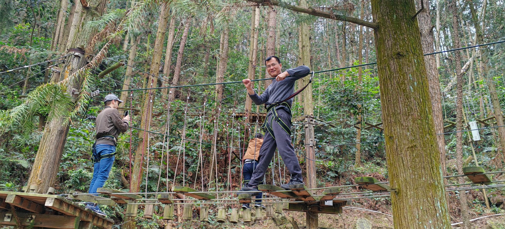 在石龙谷森林公园,大家先后体验了丛林穿越、高空玻璃漂流、射箭等户外运动项目,在轻松愉快的氛围中感受春天的气息。简单享用午餐后,大家观赏了大峡谷瀑布,领略大自然的天然情调;体验高空滑索,享受速度与激情;深入农耕园,体验田园农耕生活;挑战飞龙悬岛,一览高空美景。