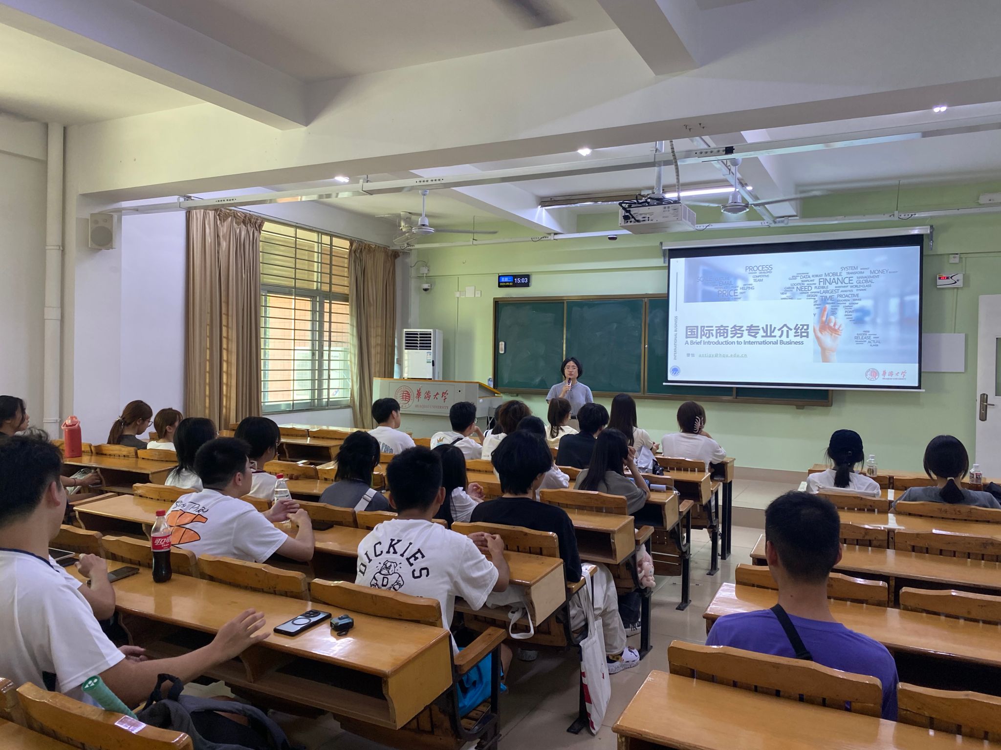 9月3日下午,全体新生以专业为单位参加专业认知教育。工商管理学院裴学亮老师、经济与金融学院赵林海老师、旅游学院曾怡老师分别围绕工商管理类专业、经济学类专业与国际商务专业为全体新生介绍各专业的基本知识框架、学习要求与未来发展方向,勉励同学们在校期间夯实理论基础,关注行业发展前沿,不断在实践中提升专业综合能力。