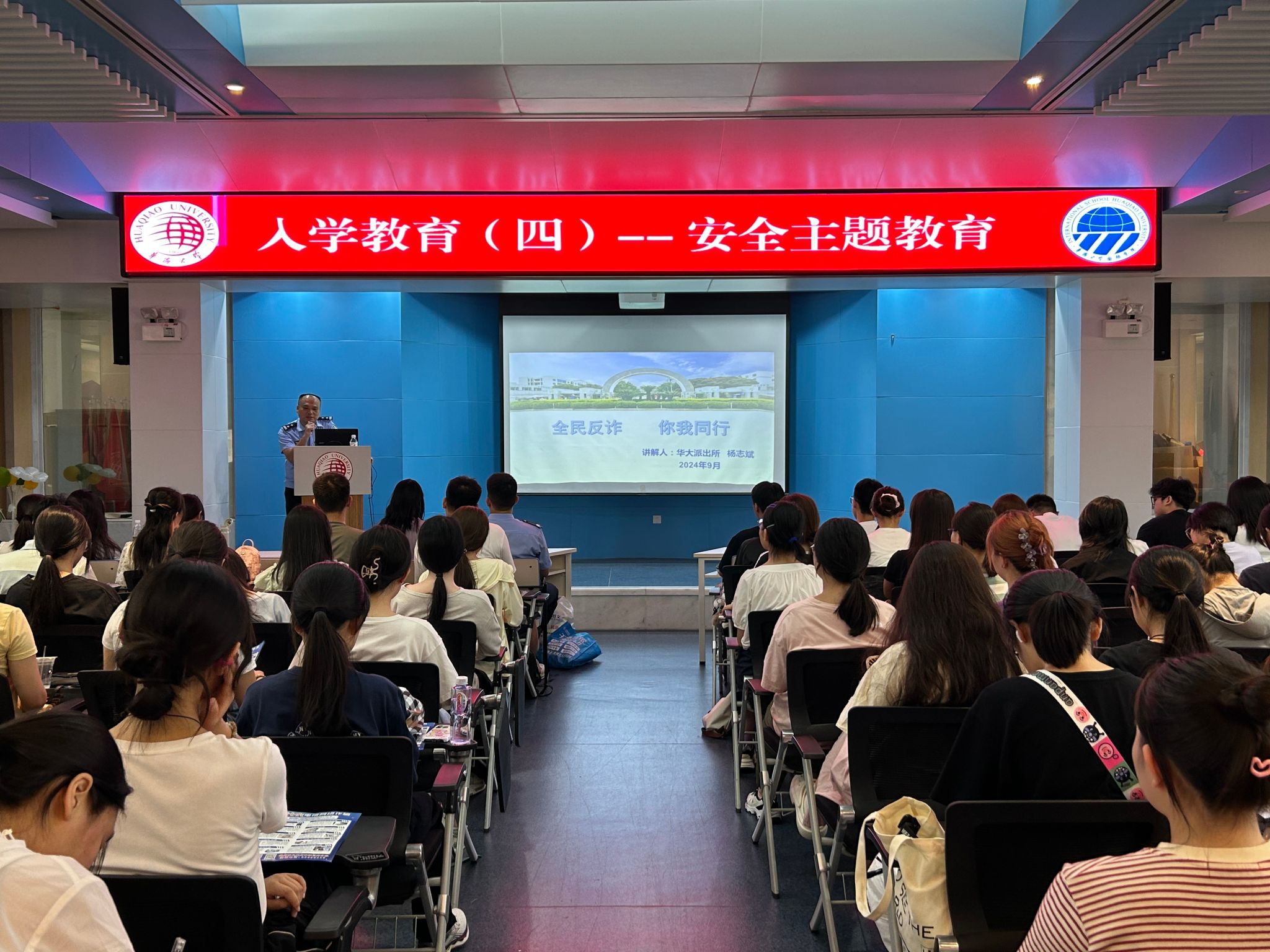 9月5日上午,学院邀请华大派出所杨志斌警官所为全体新生开展安全主题教育。杨警官围绕网络安全、财产安全、消防安全、交通安全、国家安全等方面系统地强调相关安全注意事项,引导新生现场下载反诈应用程序。5日下午,学院辅导员陈仕航老师为新生详细介绍了大学阶段入党、入团的具体要求和时间安排,鼓励新生严格自我要求,积极递交入团、入党申请。随后,陈仕航老师围绕校纪校规、课堂课外考勤纪律、学生社区管理规定、人际关系处理、安全知识等方面内容与同学们分享与交流,期待同学们能够尽快适应大学学习生活。