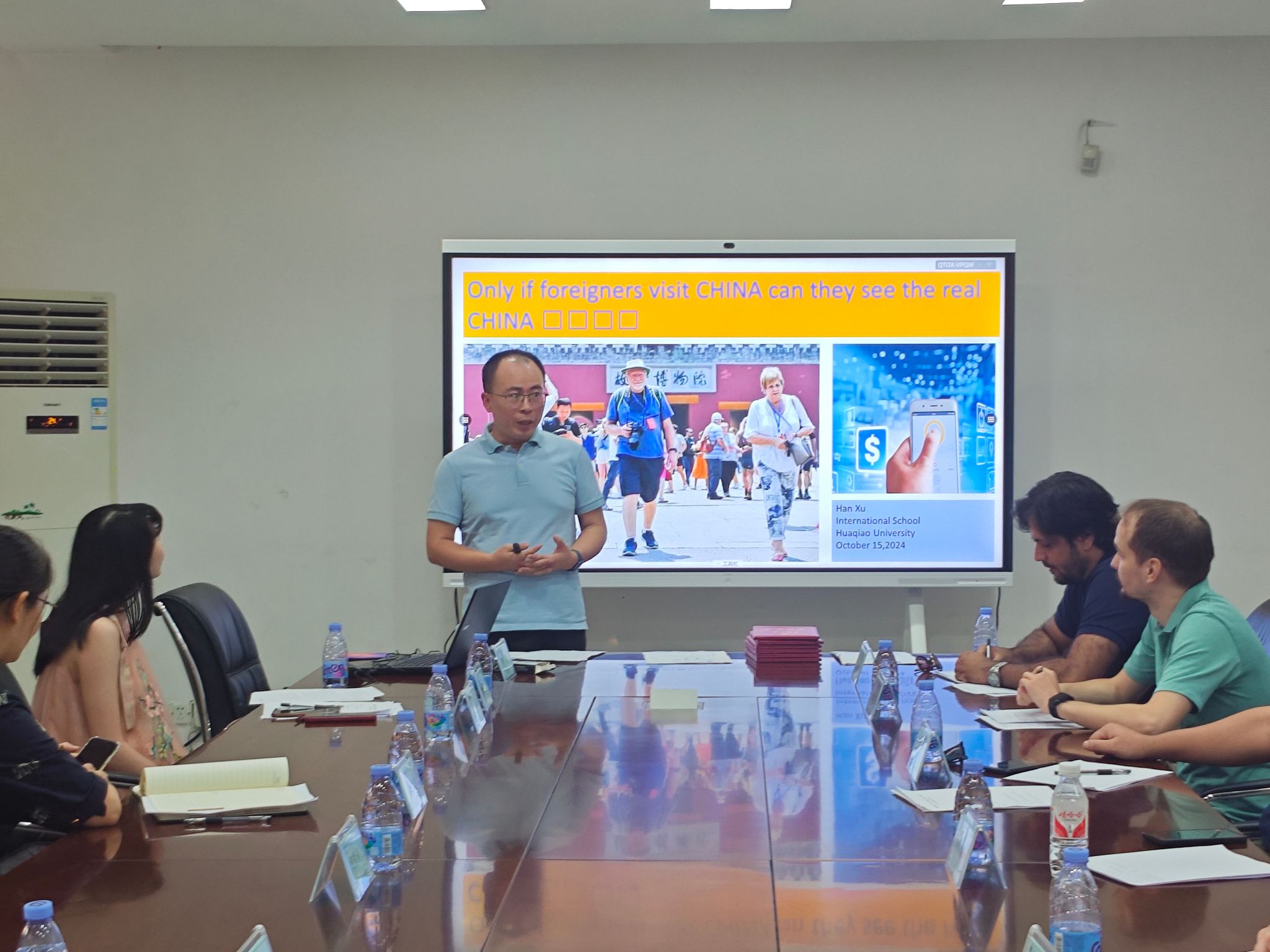 韩旭老师以“Only If Foreigners Visit the Country Can They See the Real China”为主题发表了演讲,强调了中国政府通过一系列务实举措,正努力向世界敞开怀抱,邀请全球游客共同见证并分享中国的发展成就与文化之美。