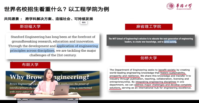 首先,邹冰心围绕学生境外交流助力升学就业,为直播间的同学们介绍了世界名校招生录取不同专业背景的学生时所看重的文书内容和个人素质,并分别以经济学、工程学专业为例进行解读并重点介绍了学校为同学们所提供的高品质、多层次的境外交流项目,建议同学们积极参与。周雨沺围绕境外升学优势、永利集团学生境外升学专业分析、北美和澳洲地区申请要点分析以及优秀申请案例分析等四个维度为直播间的同学们带来了精彩的分享。黄韦慧从提前规划专业、提升学术成绩、语言成绩准备、调整心态等方面为同学们申请境外名校提供了具体的策略参考。