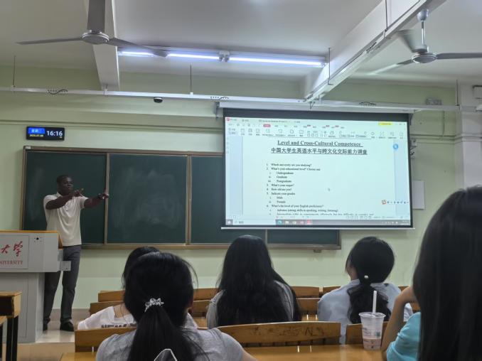 7月8日下午,yl9193永利集团在经管203教室举办了一场英语提升讲座。外教Stephen担任主讲人,2024级金融学1班和2班同学参与其中,现场座无虚席。