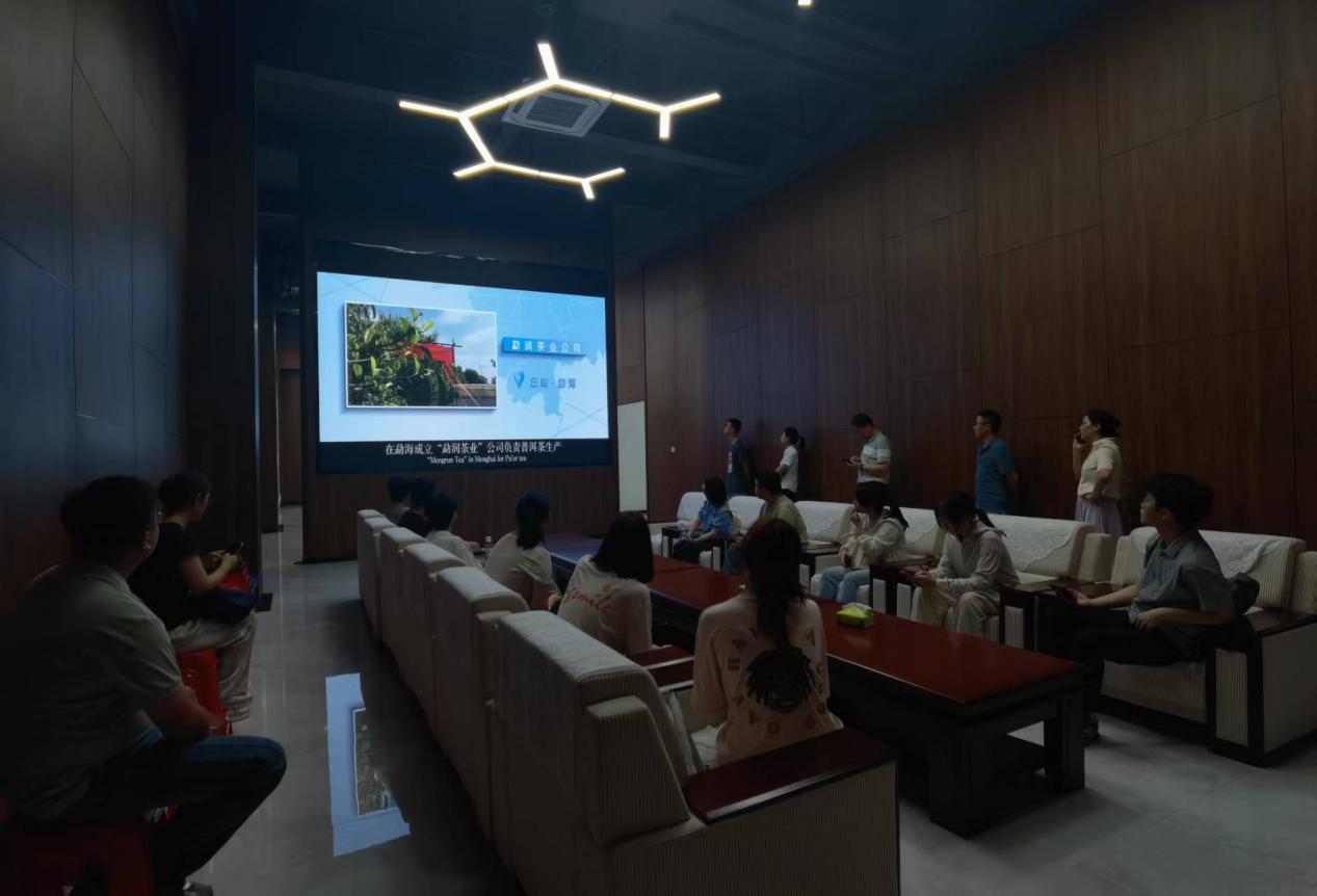 参观完生产流程后,师生们共同观看了日春实业的企业发展纪录片,回顾了公司从创立到发展壮大、深耕茶叶领域的历程,展现其在传承工艺、创新技术、拓展市场以及弘扬茶文化等方面的努力与成果,其中“日春不二价”作为企业核心经营理念,贯穿于发展始终,成为品牌赢得市场信任的重要基石,让大家对这家企业的发展故事和品牌理念有了更全面的认识。