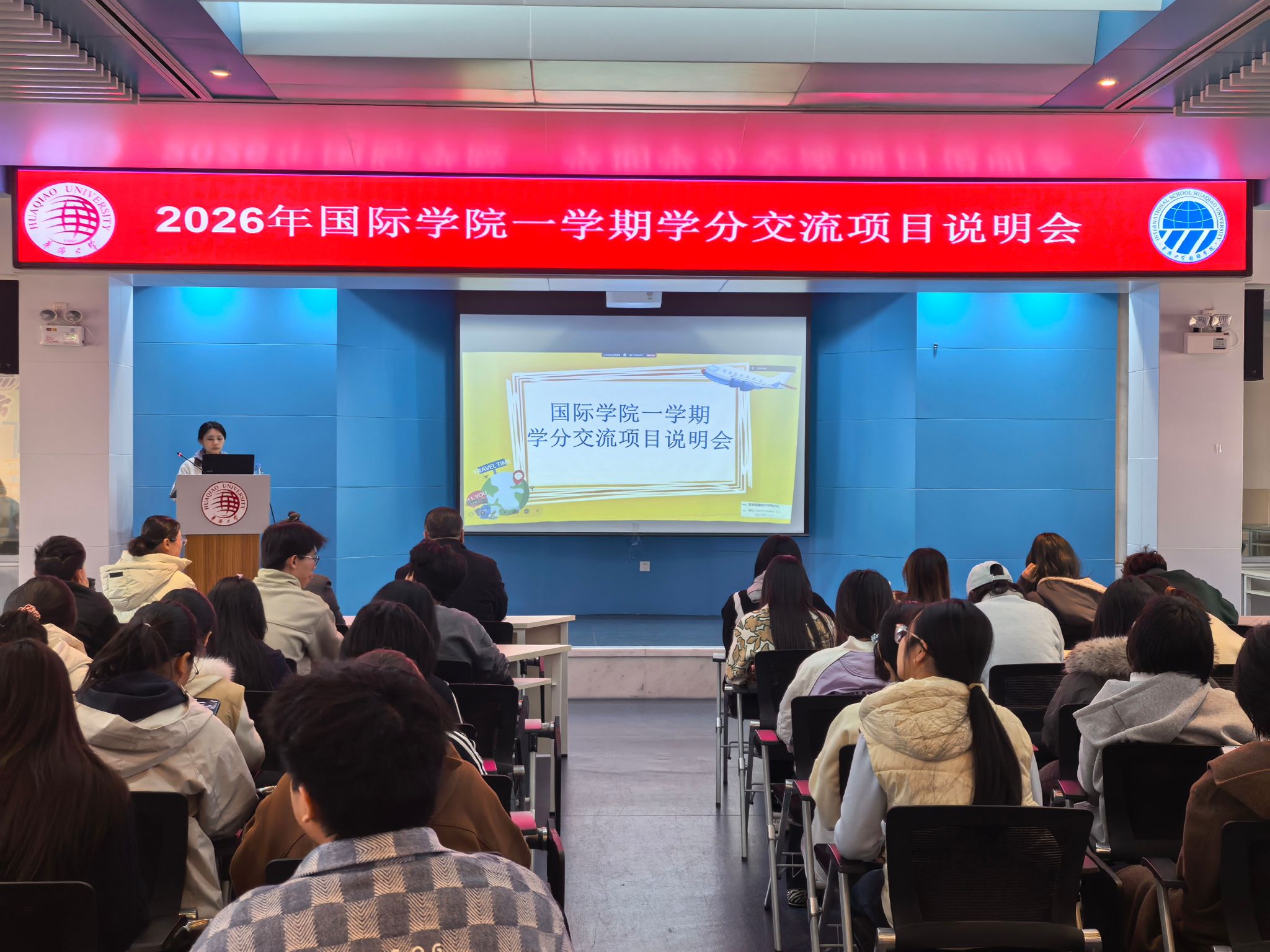 会上,交流项目秘书柳晶晶强调学院对一学期学分交流项目的重视,围绕项目各项规定、报名流程和材料准备展开详细讲解,为同学们作了全面、细致的说明,明确了各项时间节点与注意事项。各合作学校代表依次对本校课程设置、校园环境、交流学习保障等内容进行详细介绍,让同学们对各合作院校有了更直观、深入的了解。