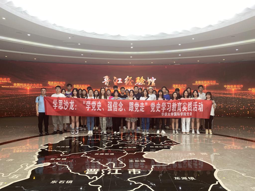 本次党史学习教育,旨在通过现场体验,让全体学生党员更加深刻地领悟“晋江经验”主要内涵,促使全体党员学党史、强信念、跟党走, 在党史学习教育实践中提升政治思想觉悟,汲取奋进力量,以昂扬的斗志和拼搏进取的精神,把自己锻造成为具有良好党性修养、宽阔的全球视野和深厚家国情怀的国际化精英人才,为建设社会主义现代化强国奉献自己的青春和力量。