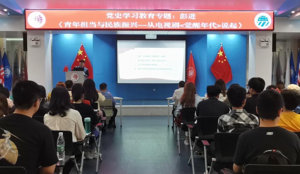 庆祝中国共产党成立100周年优秀电视剧展播剧目、重大革命历史题材史诗型电视剧《觉醒年代》在央视播出后获得了超高人气。这部剧以1915年《青年杂志》问世到1921年《新青年》成为中国共产党机关刊物为贯穿,清晰反映马克思主义在中国的早期传播和中国共产党创建的全过程。彭进从这部电视剧引入,具体围绕“寻路:从电视剧《觉醒年代》说起”“青年榜样习近平”“习近平寄语新时代新青年”“新时代青年的责任担当与中华民族伟大复兴”四个方面展开阐述。他说,寻找道路是《觉醒年代》的主旨,大家要通过电视剧去看那个年代青年的责任与担当,思考新时代新青年的责任与担当。