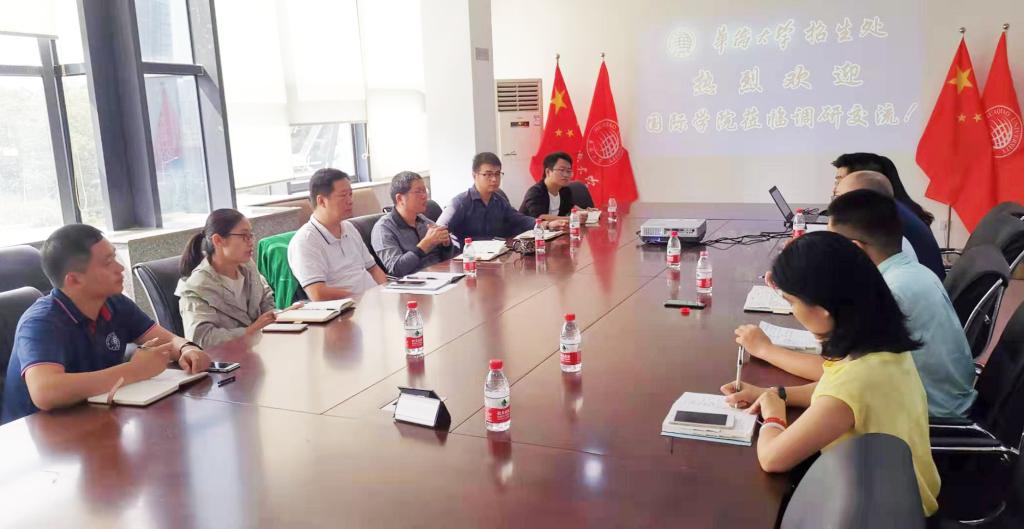 根据学校《关于对各单位开展“不忘初心、牢记使命”主题教育进一步加强指导的意见》精神,2019年10月30日上午、下午以及11月5日上午,我院李勇泉院长、陈慰星副院长率学院全英教学部、学生工作办公室、综合办公室等相关负责人分别与我校招生处、国际交流合作处、教务处座谈,就全英文教学专业境内外招生模式及成效、《中美人才培养计划》121双学位项目等学校品牌项目的优化提升、加强境外生培养、短期外教全英文课程集中授课、全英师资队伍建设、赴国(境)外交流项目学分认定、全英文通识课程及全英文教材建设、全英文教学质量提升等议题进行调研交流。