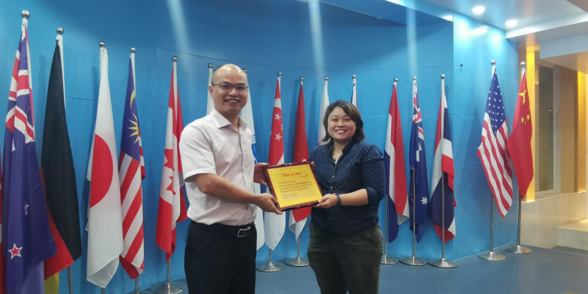 李勇泉院长为马来西亚外教刘雪晶颁发感谢函(摄影:陈俊杰)