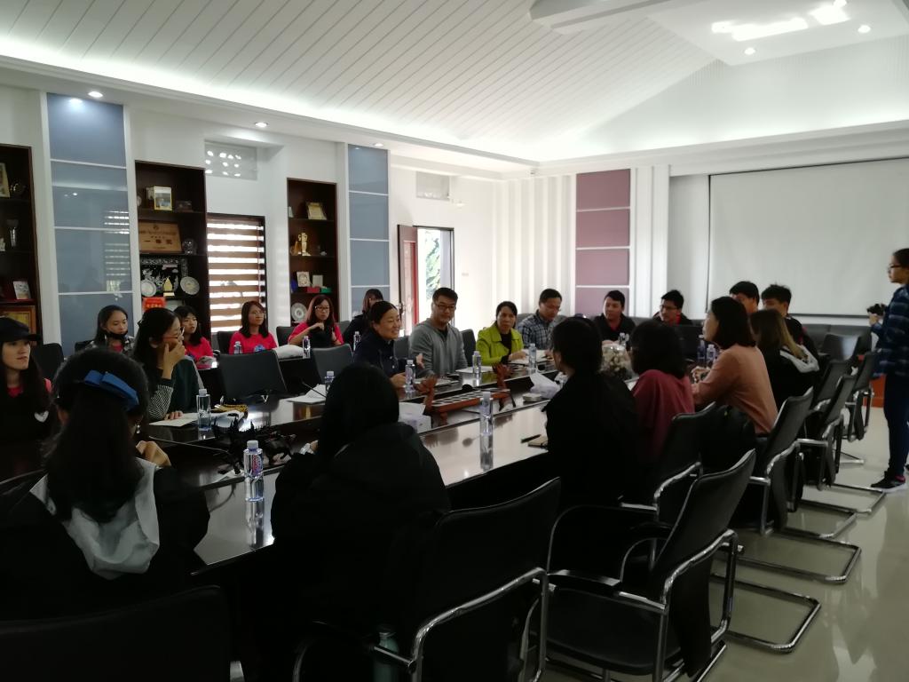 观摩结束后,华文学院沈玲副院长及汉语言系、学生办、招生办、教科办老师与来访客人座谈,双方就华文教学工作坊、学生交流以及今后的进一步合作等问题进行了初步探讨。