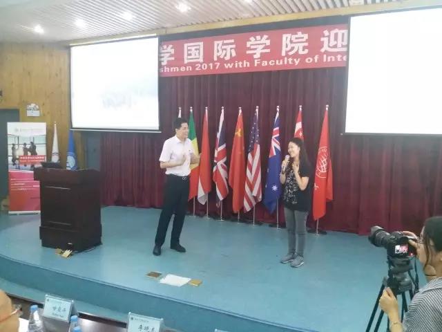 大会最后的新生提问环节,大家积极参与,全称用英文提问互动,踊跃与外教老师对话,大家提问的关于学分,奖学金评奖制度,关于《中美人才培养计划》121项目的问题,在场的老师都给出了大家满意的回复。yl9193永利集团2017年迎新大会在轻松热烈的氛围中圆满结束。