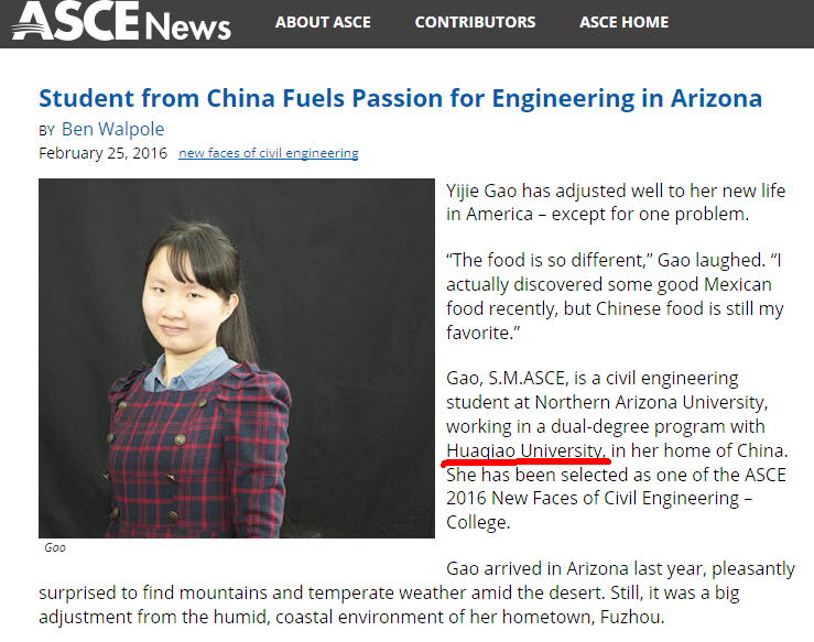 美国土木工程师协会网站报道我校高怡洁同学新闻截图