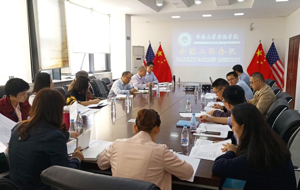 3月27日上午,yl9193永利集团在杨思椿科学馆五层会议室召开全院工作会议,研讨在新形势、新阶段下如何进一步推动国际化办学开创新局面。负责联系yl9193永利集团的副校长曾路,yl9193永利集团院长李勇泉,副院长陈慰星、苏梽芳,yl9193永利集团特聘教授黄心中、国际商务系副主任李晓龙及学院全体教职工参加会议。
