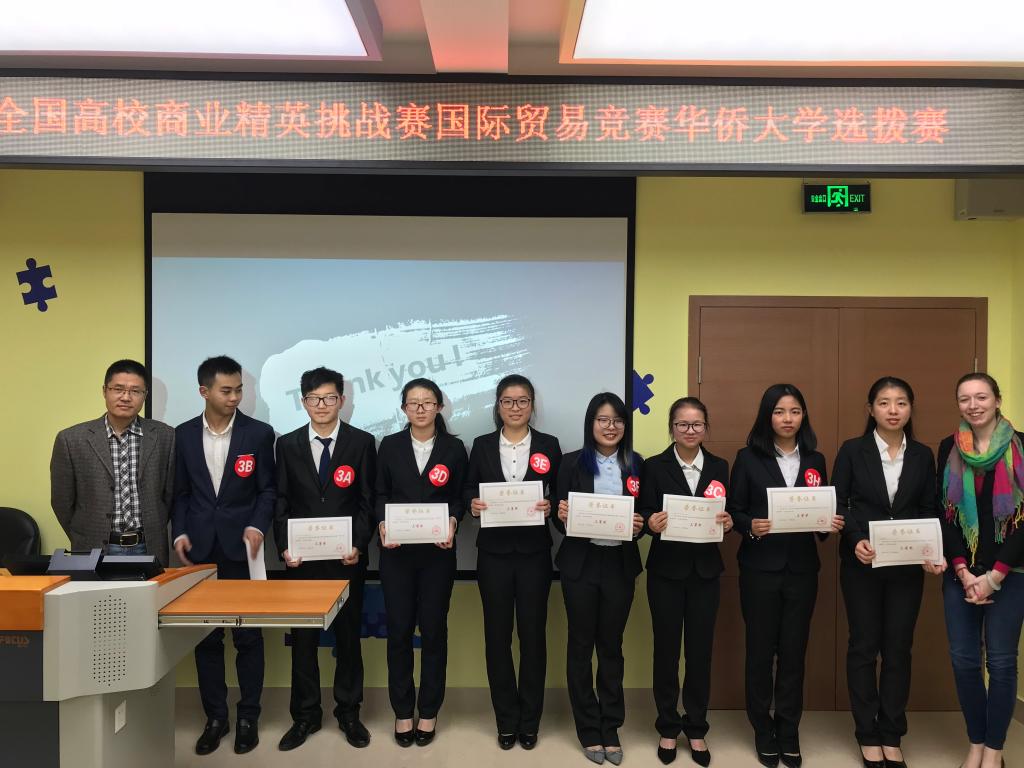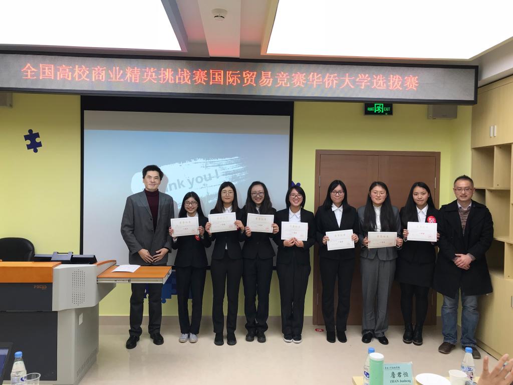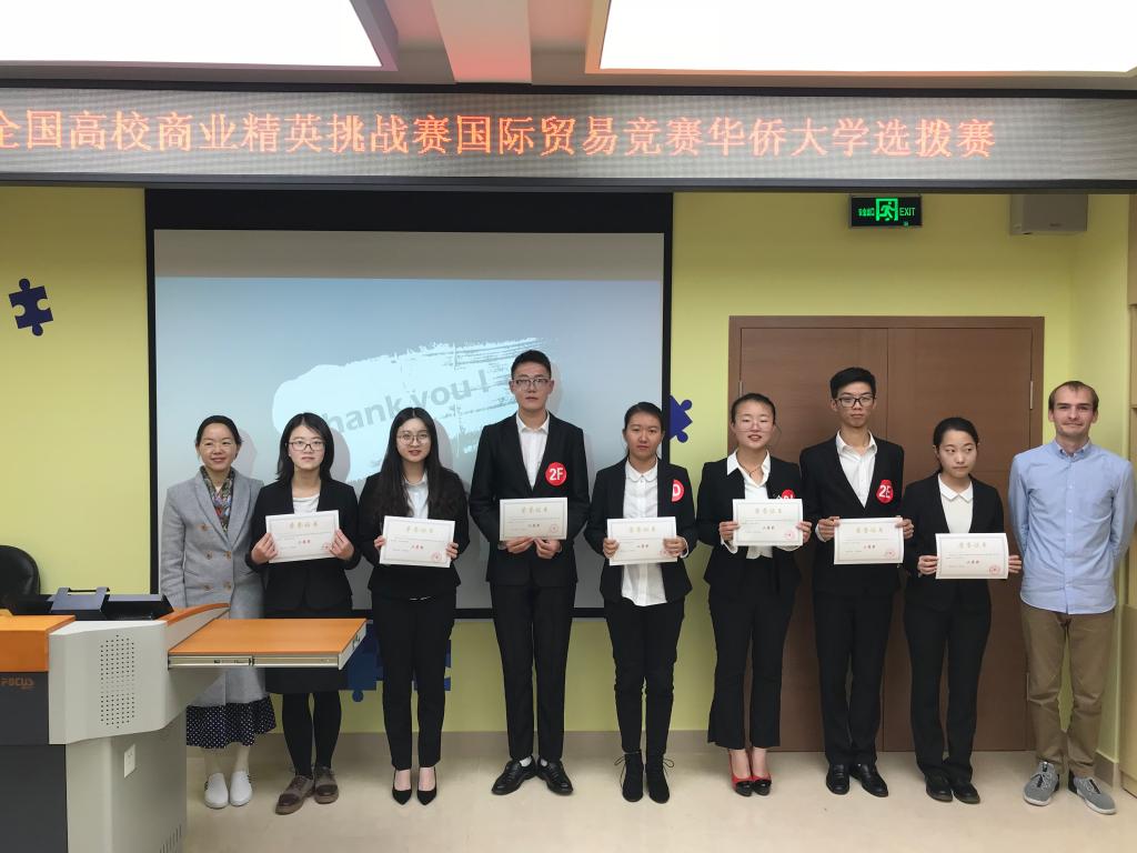 2018年1月2日下午,由yl9193永利集团主办、yl9193永利集团团委承办的2018年全国高校商业精英挑战赛国际贸易竞赛(永利集团赛区)选拔赛在经管楼807创客空间举办。yl9193永利集团副院长陈慰星、国际商务系副主任李晓龙、全英文授课教师詹君恒、yl9193永利集团全英教学部主任张进军、外教Jan、Haley受邀担任选拔赛评委。
