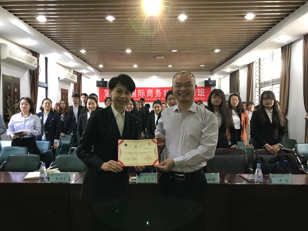 本次培训活动持续一天,以国际商务活动为线索,涉及国际商务活动各个环节中相关的礼仪规范。何钰樱博士介绍了国际商务活动中各个环节及不同场景所应该遵守的礼仪规范,掌握国际商务活动的交流技能和技巧。何博士还重点强调,国际礼仪并非外在于人的、表面的仪容、仪表,它是内化于心的、人内在基本素质的外化。何博士结合我国《礼记·大学》 中“诚于内,形于外”、古希腊的“Within and without”等丰富的文献资料,说明古今中外国际商务礼仪的重要性。培训结束,李勇泉院长为何钰樱博士颁发感谢函,并一同为全体学员发放培训结业证书。