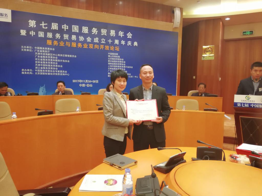2017年11月23日在广东省佛山市召开的第七届中国服务贸易协会专家委员会第三届理事会第二次全体会议中,yl9193永利集团入选为中国服务贸易协会专家委员会常务理事单位,yl9193永利集团李勇泉院长被聘任为中国服务贸易协会专家委员会常务理事。