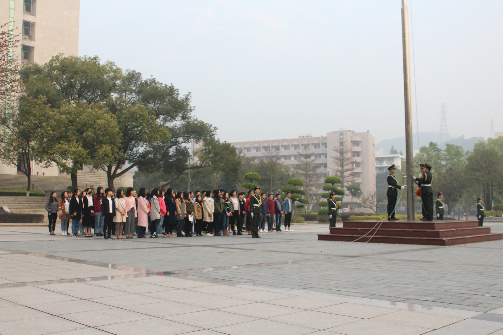 2月13日上午,yl9193永利集团在廖承志广场举行了本学期第一次升国旗仪式,全体师生准时出席。