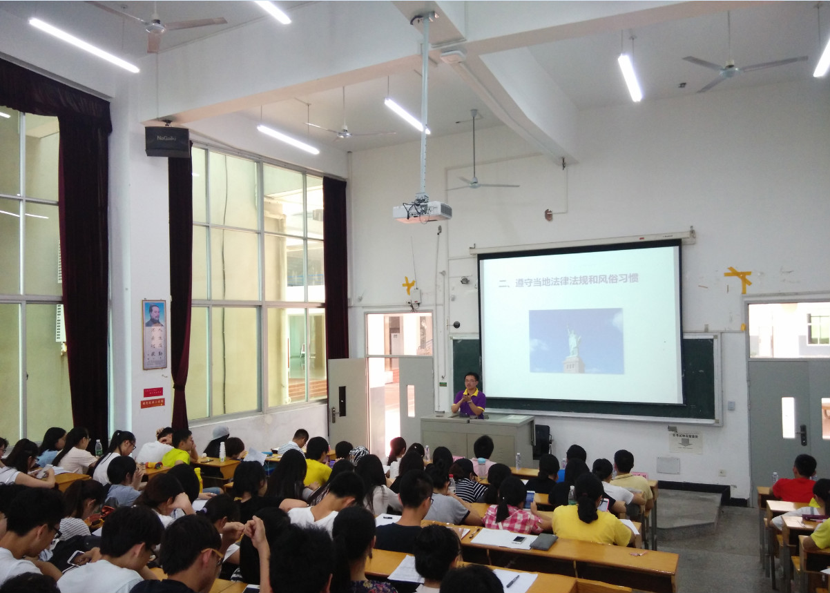 翁文旋介绍了我校赴境外交流学习项目特别是《中美人才培养计划》121双学位项目学分转换相关事宜;陈旭峰重点普及了外事礼仪,包括外事知识、涉外人员守则和涉外礼仪原则,并鼓励大家在外广交友,促进文化融合,体会团队精神;王雷就留学期间宿舍情况、退宿流程等进行了详细说明;陈建志强调了同学们在国外留学期间应注意的安全问题;林恒就留学生活和细节进行了生动讲解,解答了学生关于在国外生活学习的相关疑问。