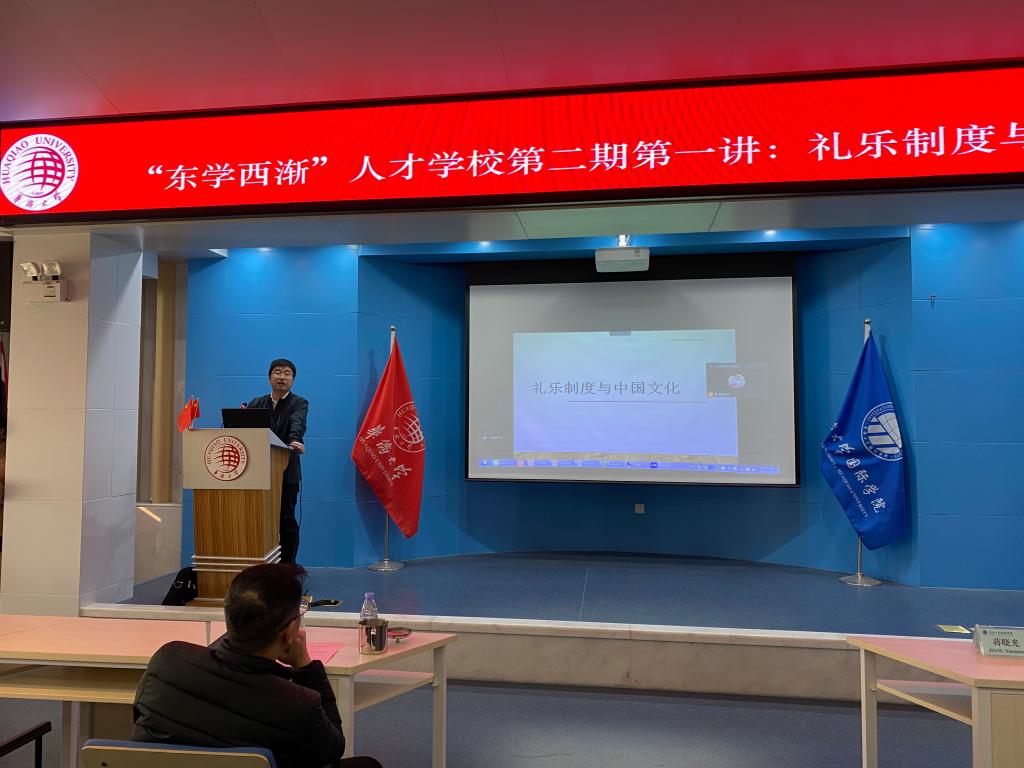 12月4日下午,yl9193永利集团“东学西渐”人才学校第二期第一讲在杨思椿科学馆五楼多功能会议厅举办。讲座由yl9193永利集团院长侯志阳教授主持,永利集团文学院院长蒋晓光教授主讲。yl9193永利集团“东学西渐”人才学校第二期全体学员、2021级全体学生到场聆听学习。