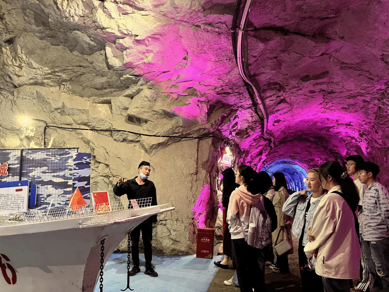 镜山文创园主体为防空洞,主要由三部分展区组成。第一部分为红色文化区,其中包含闽南文化馆、防空历史馆、各大战役馆等。第二部分为灯光秀展示,在这一展区,同学们不仅可以欣赏金黄色灯光麦田,体验妙趣横生的钢琴音乐步梯,还可以游览紫藤花隧道,火焰灯隧道。第三部分则主要是一些娱乐性体验项目,包括打鼓灯体验区,射击体验馆等。