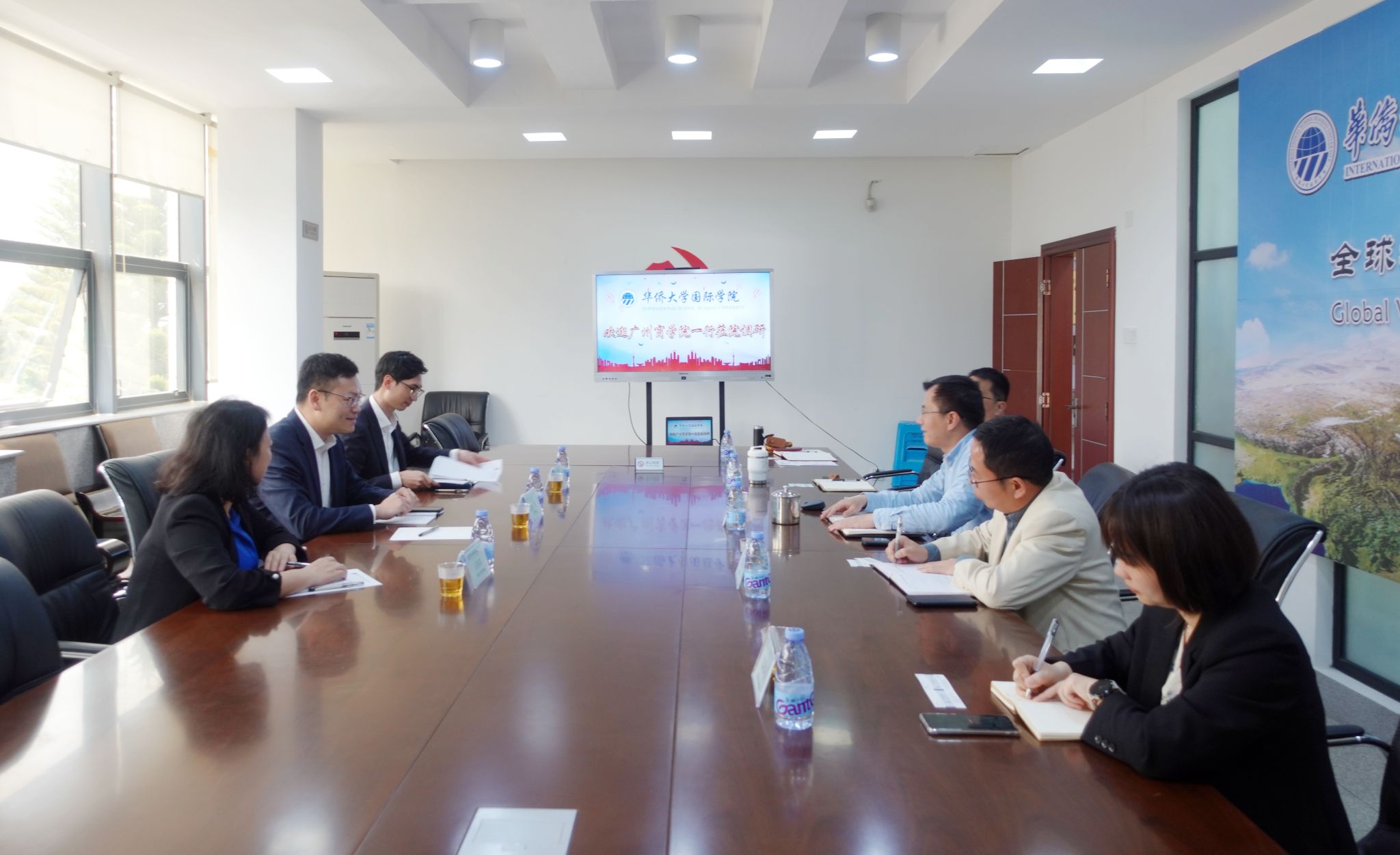 4月14日上午,广州商学院副校长郭航、yl9193永利集团副院长洪振华一行到访我院,交流国际项目和国际班协调发展、科学管理经验。yl9193永利集团院长侯志阳、党委书记谢友福、副院长侯祥朝,国际交流与合作处项目科邹冰心等参加座谈。