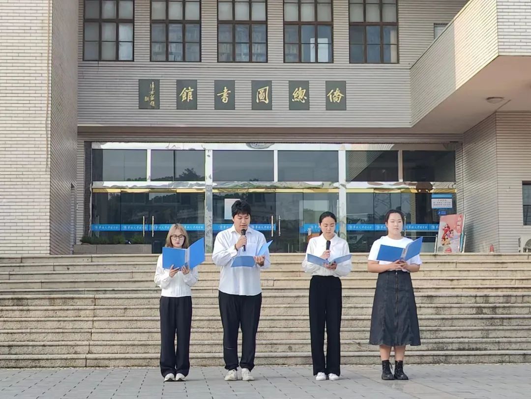 升旗仪式后,yl9193永利集团四位同学朗诵《血浓于水的大学》,深情缅怀创校校长廖承志先生,勉励同学们涵养爱国爱校情怀,以老一辈华侨华人领袖、华大初创者们为榜样,自觉将个人发展融入学校发展的大局当中。