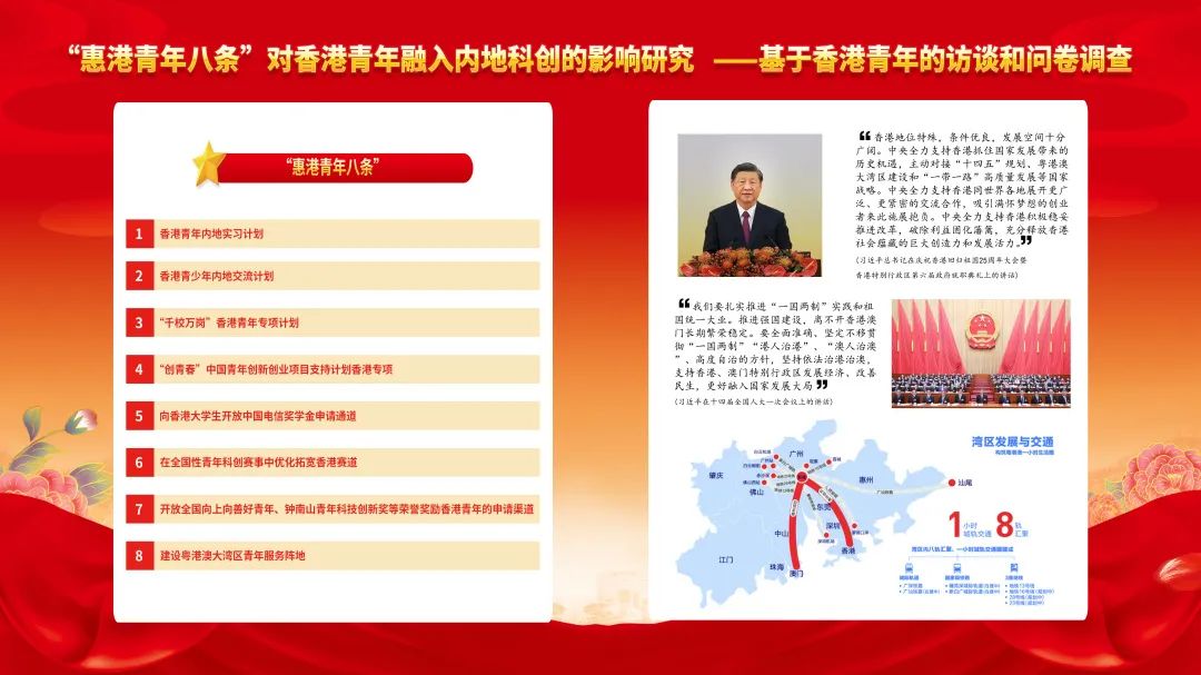 本项目通过了解香港青年对“惠港青年八条”的了解程度、“惠港青年八条”对香港青年融入内地科创的促进程度以及主要促进因素,为“惠港青年八条”的进一步实施提供相关依据,从而帮助香港青年更好地融入祖国科技创新发展、融入国家发展大局,丰富“一国两制”在香港的实践,进而推动祖国的完全统一。
