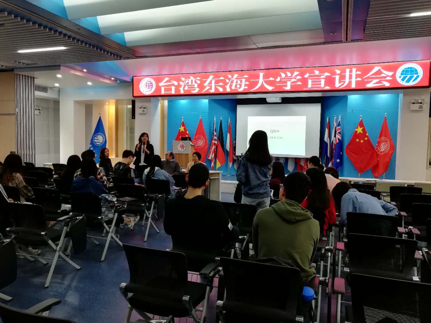 会谈前,东海大学推广部洪尧勋主任介绍了东海大学概况,王小璠院长介绍了yl9193永利集团的师资情况,推广部张玲华老师及yl9193永利集团何盈儀老师解答了同学们提出的相关学习、生活、住宿等方面的问题。