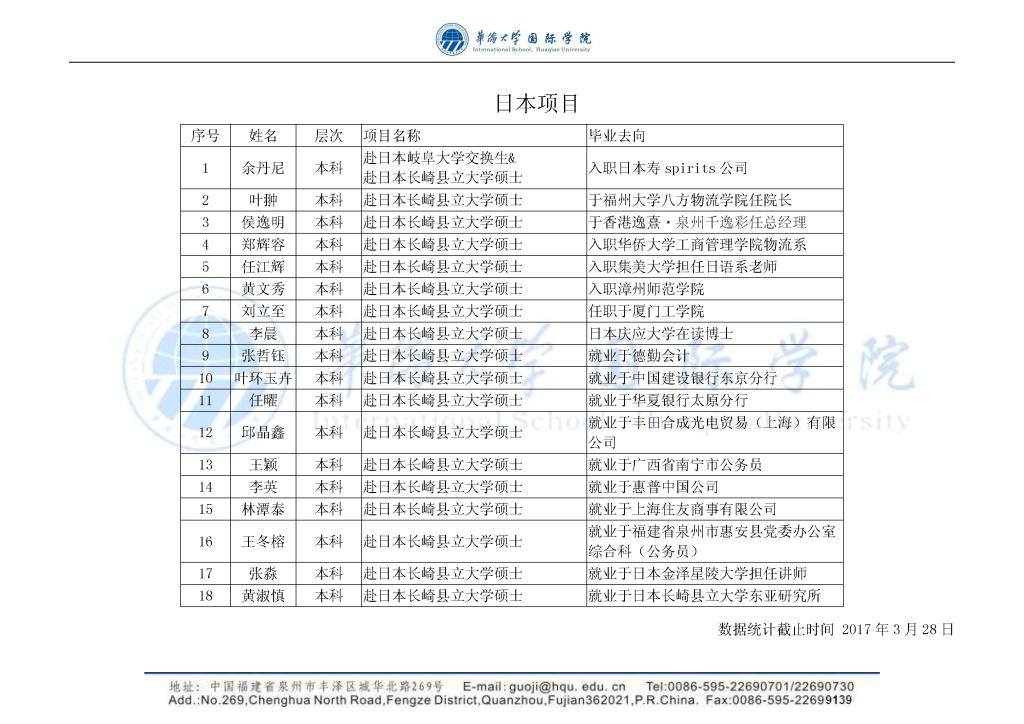有参加项目经历的学生,在就业时也具较强的竞争力。据不完全统计,参加日本长崎县立大学项目的同学毕业后的就业单位有中外高校、银行、国家公务员、500强名企等。