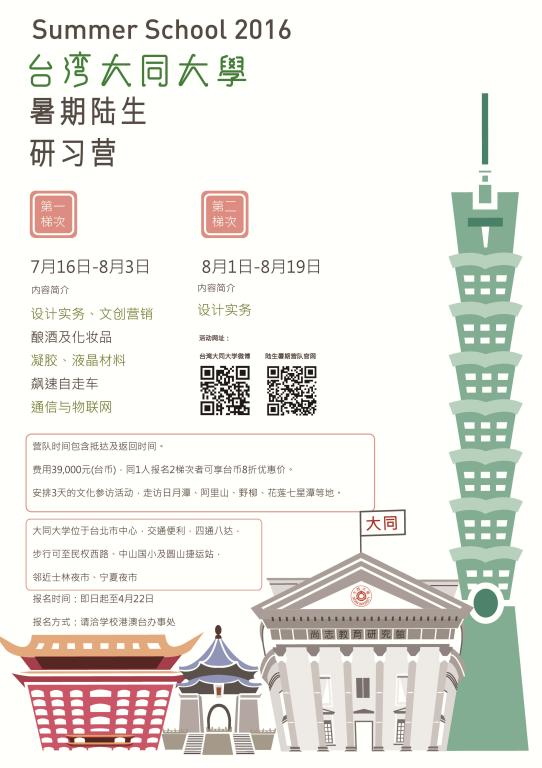 应台湾大同大学邀请,我校将选派学生前往该校参加暑期研修项目。项目详情及报名方式请下载项目介绍资料查看。