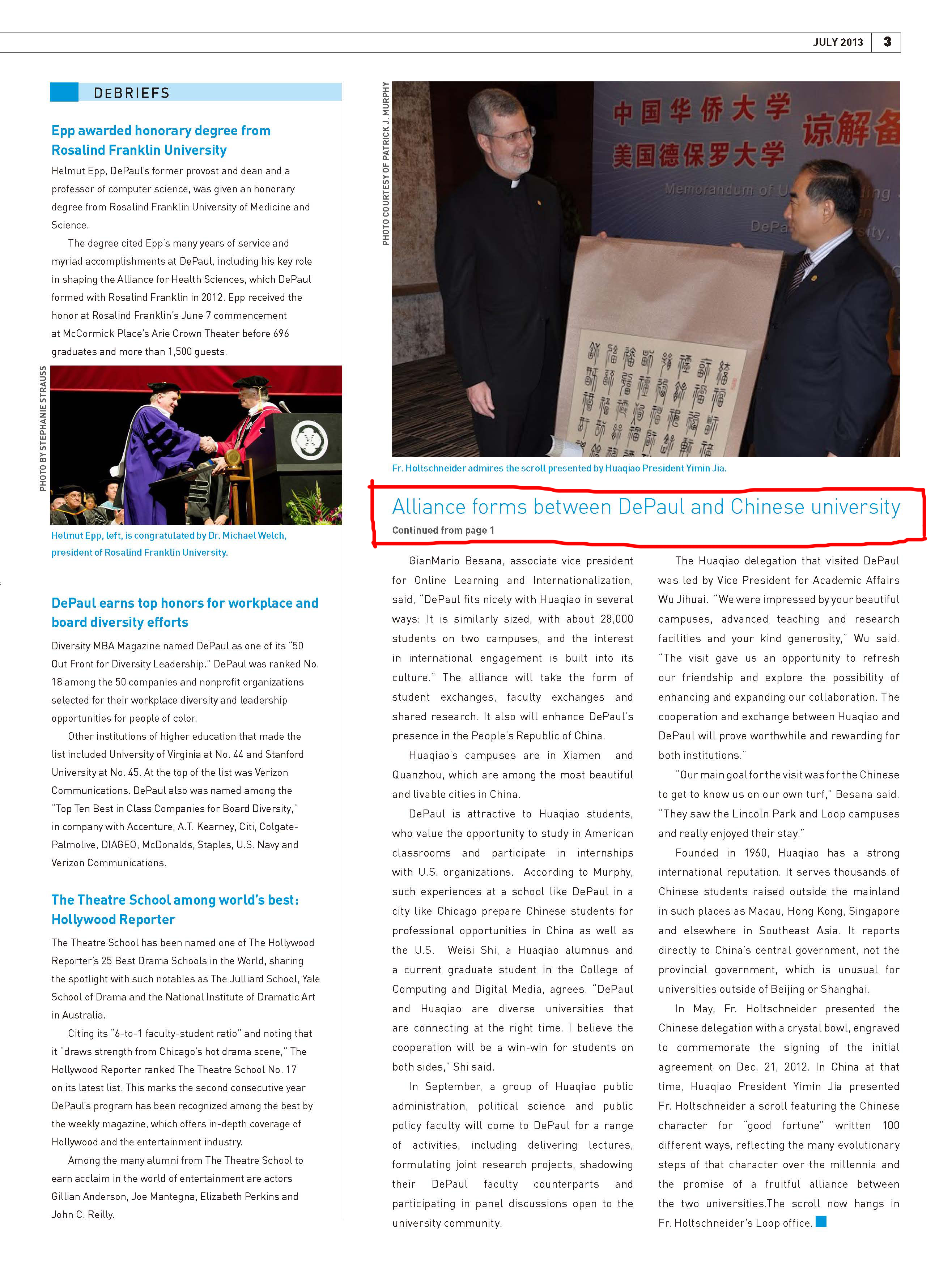 美国德保罗大学新闻纵横:德保罗大学与中国的大学建立了合作关系