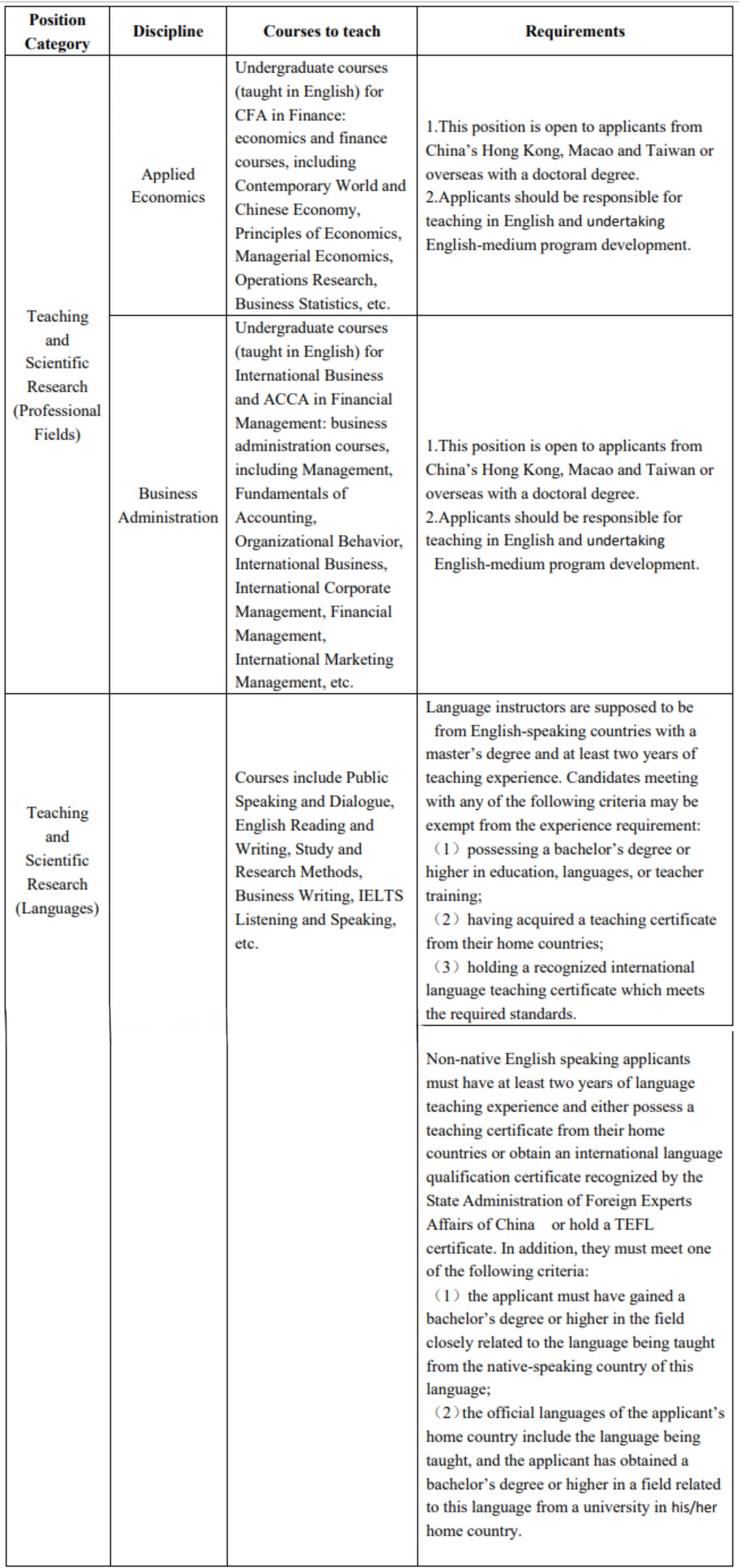 Recruitment Announcement for Faculty Positions of International School, Huaqiao University