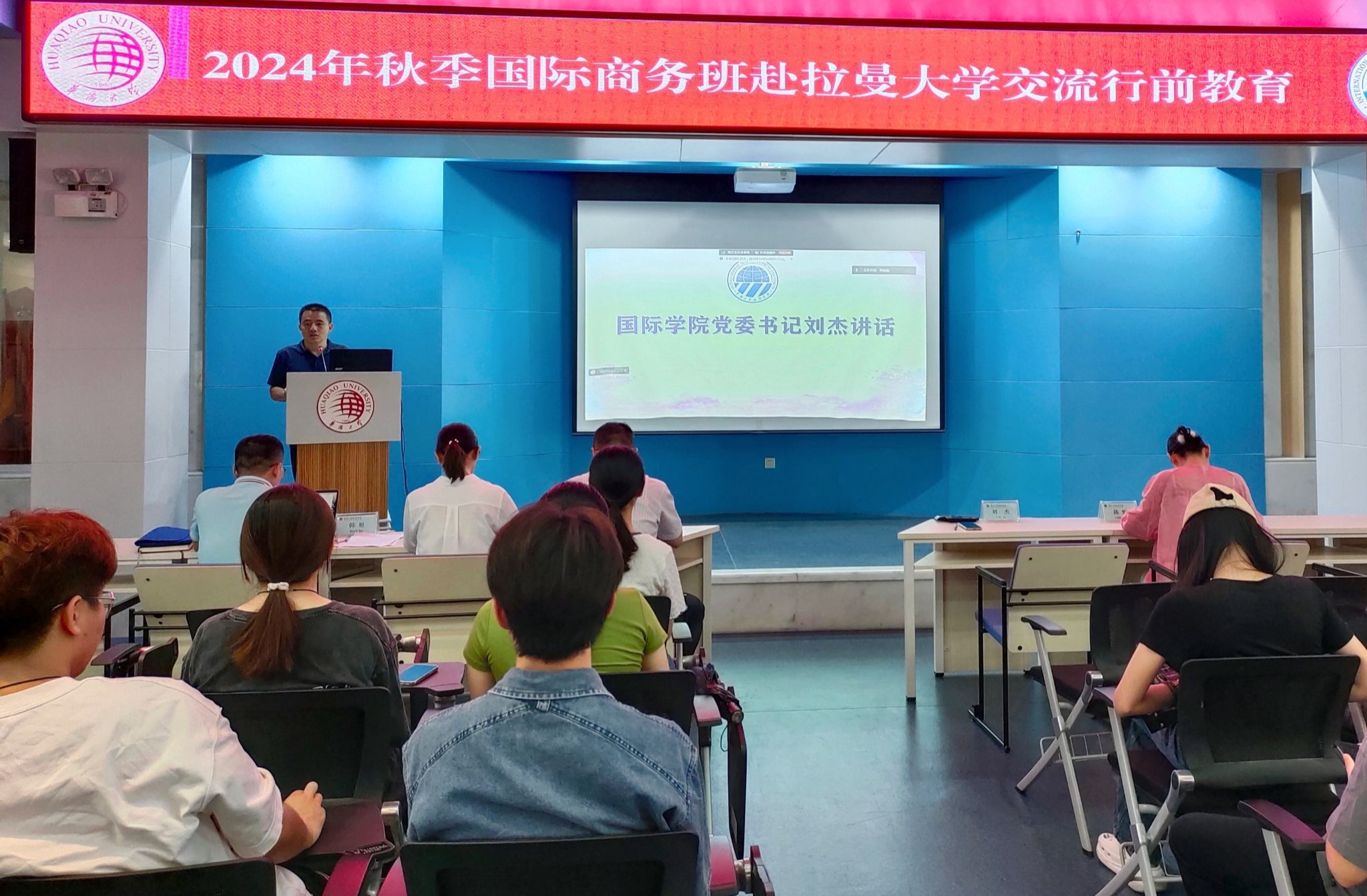 9月10日上午,yl9193永利集团在杨思椿科学馆多功能厅举行2024年秋季国际商务班赴马来西亚拉曼大学交流行前教育。yl9193永利集团院长林春培、党委书记刘杰、副院长瞿皎姣、全英教学部主任陈怡、学工办主任兼团委书记韩旭等参会。