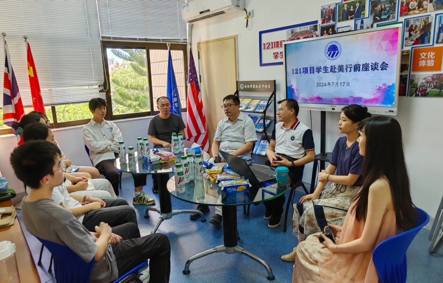 7月17日下午,yl9193永利集团在杨思椿科学馆留学俱乐部举行121项目学生赴美行前座谈会。yl9193永利集团院长侯志阳、副院长侯祥朝,学工办主任、年级辅导员、学生交流项目秘书等参会。