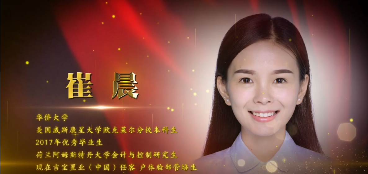 会上,121项目优秀毕业生代表们依次发言。我校2017届项目毕业生崔晨分享了在威斯康星大学欧克莱尔分校和永利集团的学习生活经验与建议,同时感谢121项目给她带来更多的就业机会、更强的竞争力。