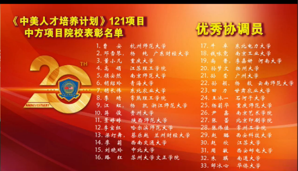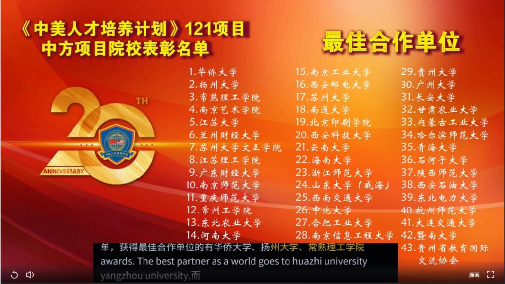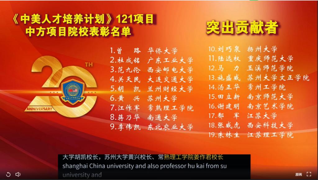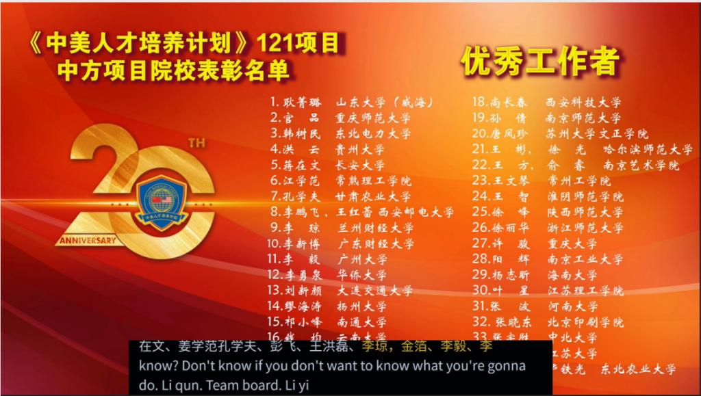 2020年10月22日上午,由教育部中国教育国际交流协会(CEAIE)、中教国际教育交流中心(CCIEE)和美国州立大学与学院协会(AASCU)共同主办的中美高等教育合作与交流20年探索与实践暨《中美人才培养计划》121项目20年庆祝活动在线上举行。来自中美各高校的200余位领导、专家、学者参加会议并展开交流研讨。