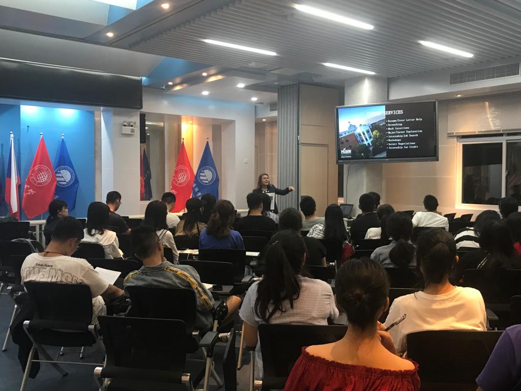 美国乔治梅森大学(GMU)国际教育中心项目运营主管Krista老师为2018级金融双学位班的同学带来《Into Mason》的主题讲座,让同学们深入了解梅森的学校和专业情况。据介绍,《中美人才培养计划》121项目是乔治梅森大学目前参与学生最多的中国高校合作项目。