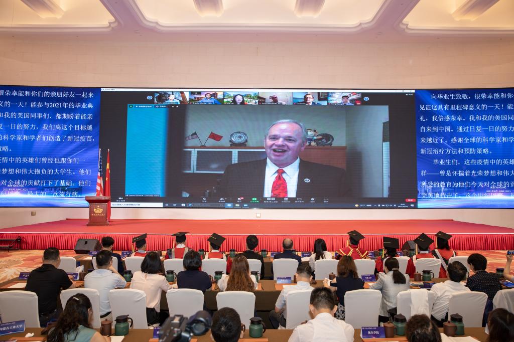 此次毕业典礼来自中方34所高校、美方17所高校的142名代表参会,我校国际交流合作处和yl9193永利集团相关负责人与会。