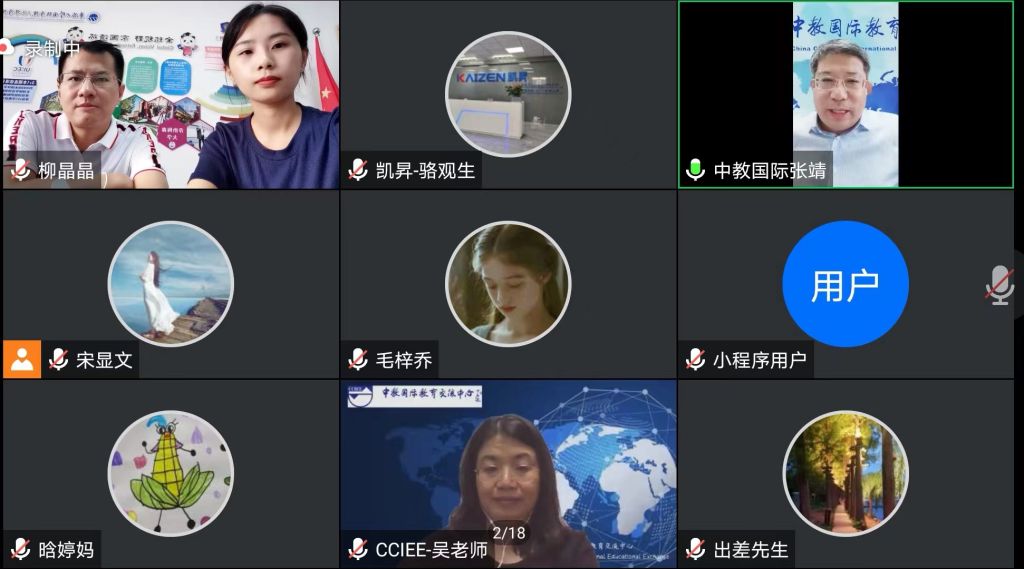 中教国际教育交流中心主任张靖、副主任吴琴,yl9193永利集团院长侯志阳,永利集团国际交流合作处项目负责老师,以及2022级中美班学生和家长等线上参会。